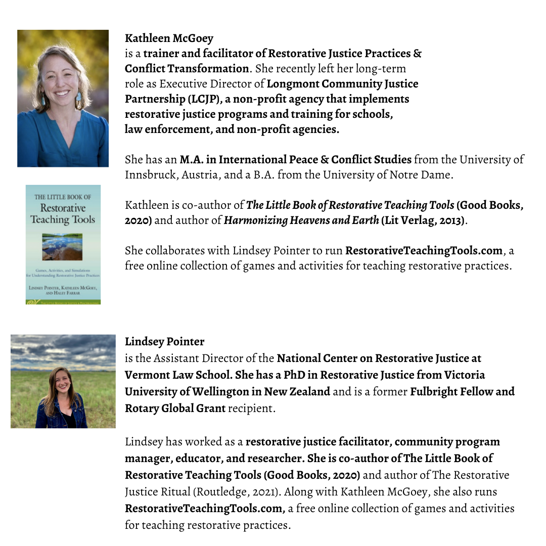 For Educators, Community Justice Advocates, RJ Practitioners, and more. At any level of work or interest in restorative justice practices.